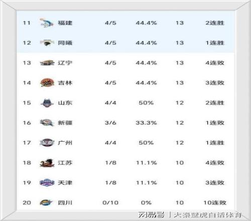 ③难尝一胜的前总冠军四川队继续沉沦,目前0胜10负继续垫底。