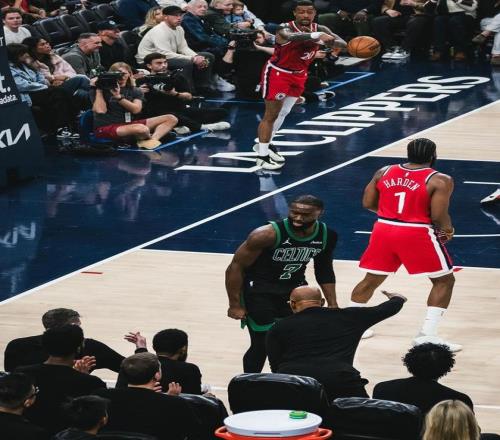 回到比赛祖巴茨替补登场,一上来就帽掉了布朗上篮,但快船两次进攻都没有打成,西蒙斯转换三分命中,哈登突破上篮,布朗造成犯规两罚全中,哈登助攻祖巴茨吃饼暴扣,杰伦布朗突破失误,哈登突破被犯规快船边线发球,祖巴茨内线又被犯规快船继续边线球,哈登三分不中巴图姆补篮得分,回过来杰伦布朗中距离还中状态真好已经得到了13分。哈登突破被冈萨雷斯抢断,西蒙斯转换三分命中,哈登不信邪运球继续打冈萨雷斯,这次突破内线完成上篮帮助快船将比分追到23-32,首节比赛还剩最后2分钟。祖巴茨连续误攻,怀特抓住机会连得5分,分差来到14分泰伦卢喊出暂停。祖巴茨一回来快船这防守下降好几个等级,内线守不住外线防不出去,琼斯内线2+1加罚不中,巴图姆三分也开了,但是怀特0.2s压哨制造了桑德斯三分犯规,三罚全中后凯尔特人42-28结束首节!