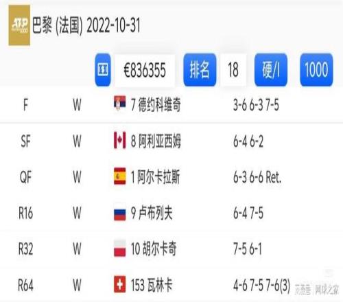 当然,夺冠过程中战胜德约拿到含金量十足的大师赛还不止这些,你还能想到哪些呢?(来源:网球之家 作者:罗城七爷)
