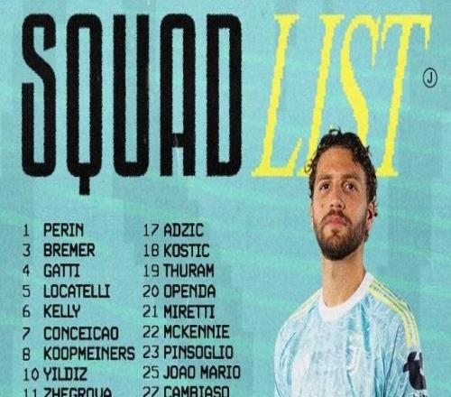尤文本轮欧冠大名单:伊尔迪兹领衔,布雷默、凯夫伦缺阵
