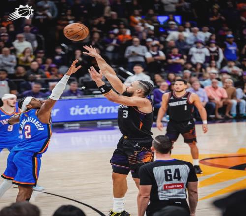 北京时间1月5日,NBA常规赛:布克最后0.7秒命中三分绝杀,太阳主场108-105险胜雷霆。此役过后,雷霆30胜6负继续排名联盟第一,领先东部榜首活塞3.5个胜场,领先西部第二马刺4.5个胜场。